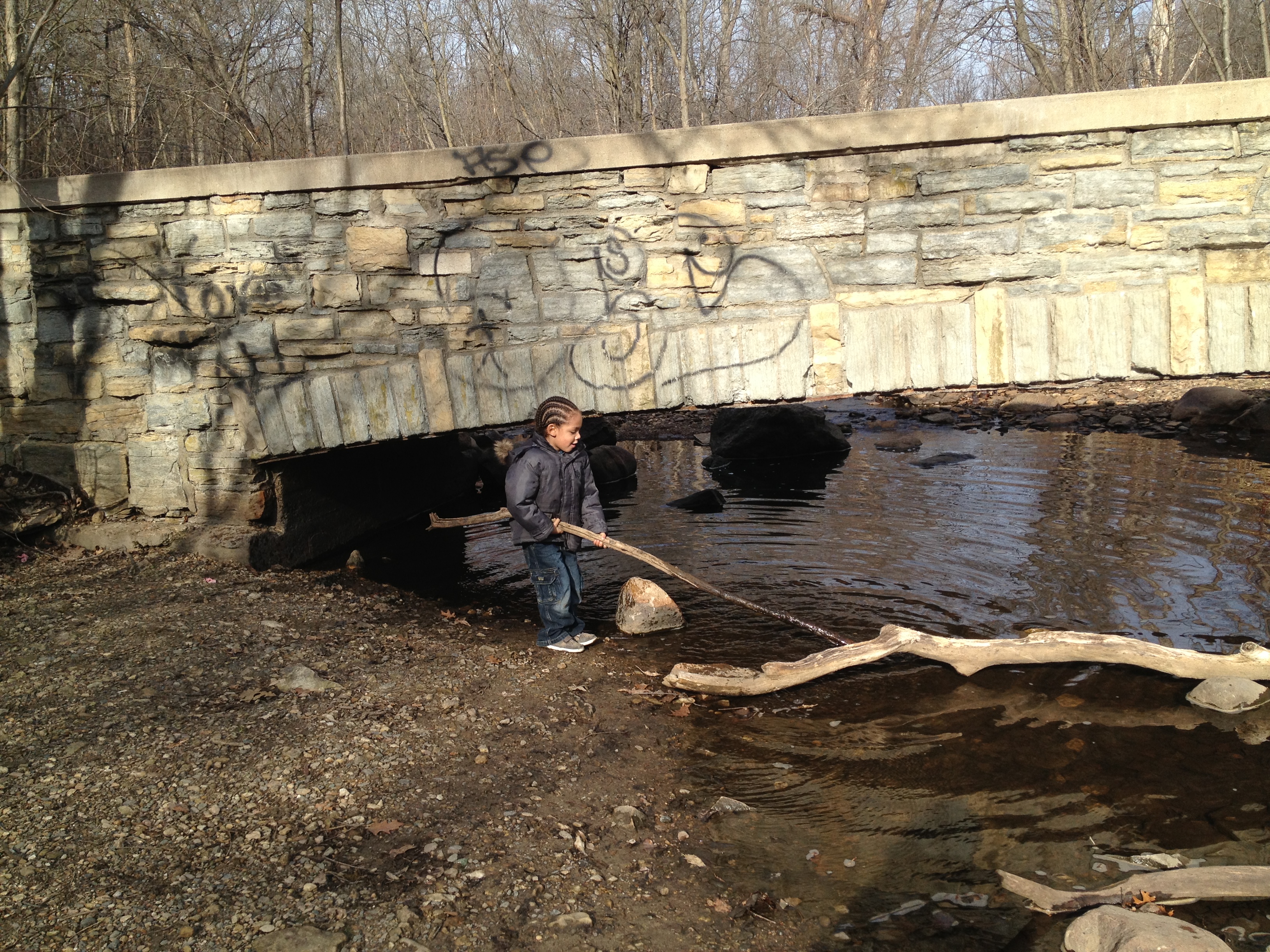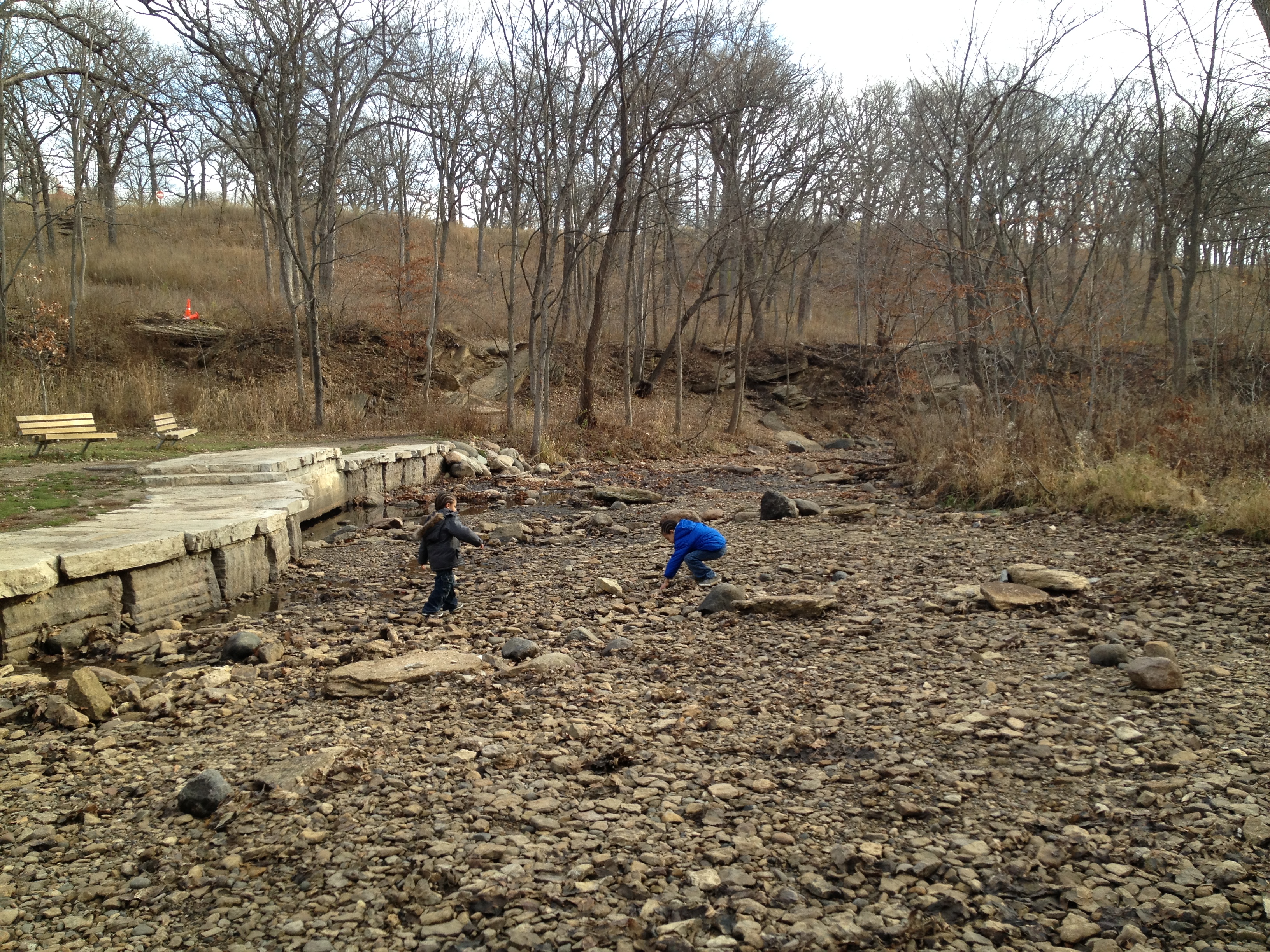 Also- do you see how the water is basically up to the top of that bridge? Here’s the boys playing under it in 2012: