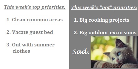 Ok. Back to business. This week will be all about business, because I have a burning need to get my house in order.